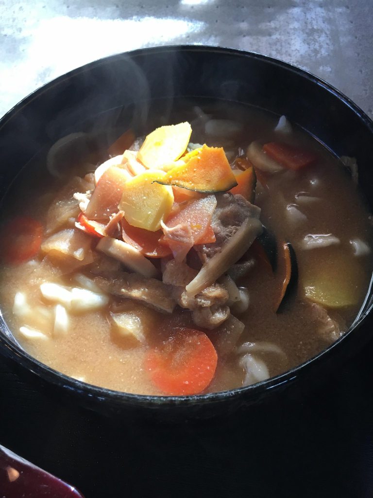 ひらべったく幅広に切ったうどんを茹でずに、汁の中に直接入れて煮るのがおっきりこみです。今の季節は芋やにんじんやごぼうなどの根菜たっぷり、そして小麦が溶け出した汁は熱々で冷めにくく、心も身体もポカポカに温まります。これを「うまいんね~」と言いながら食べるのがかつての上州の“おいはん(お夕飯)”の日常風景でした。