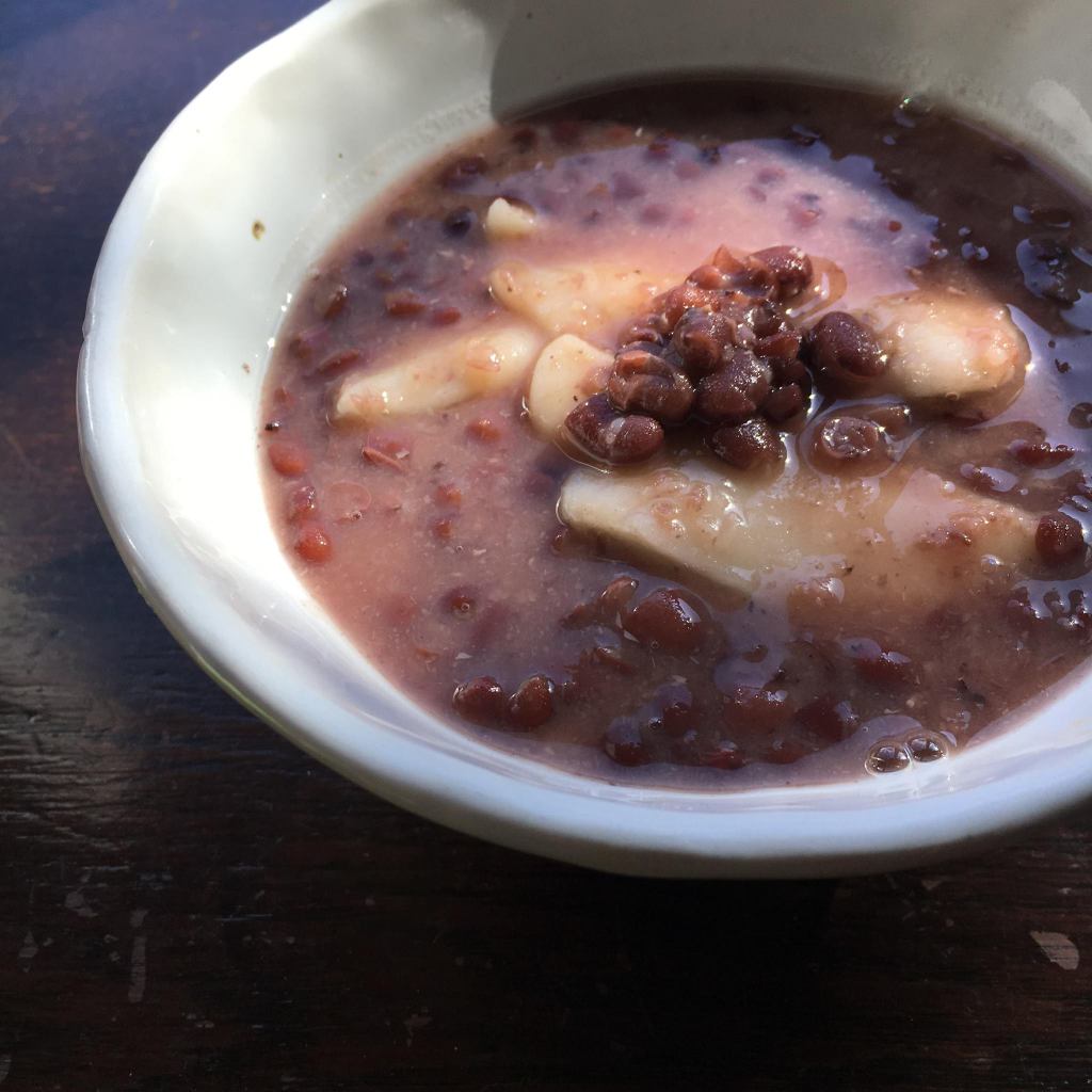 群馬の南西部・多野地域でずいぶん昔に食べられていたという「小豆ぼうと」。かわいい名前が印象的な、「粉もの王国のお汁粉」です。すなわち、おっきりこみの入ったお汁粉!上州ではもち米が希少だったため、おっきりこみやすいとんを使ってお汁粉を作ったのですね。つばくろで扱っている農家さんの小麦粉と天日干しした小豆で作ってみたら、「ぼってり」とした味は甘すぎず、優しく、どこか懐かしい。「農作業やスポーツのあとに食べたらおいしいだろうなあ!」と思いました。