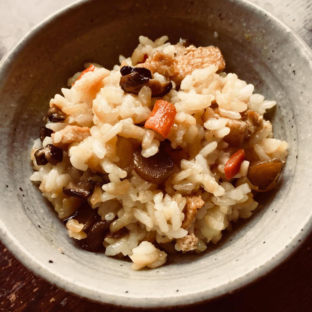 群馬県各地の天神講や秋葉講などのお祭り行事のときに振る舞われたのが「五目飯」。にんじん、ごぼう、油揚げ、干ししいたけなどの具を油で炒め、一緒に炊き込んだり、炊きあがったごはんに混ぜ込んだりします。「昔はかんぴょう、サバやイワシの缶詰も入れた」とのこと。炊事係によって具が変わるのも五目飯の魅力だったようです。さらに昔、昭和初期には「おかずがいらないし、変わりもののごちそうで家族が喜んでくれる」(奥多野)、「めったに食べられないごはんで心待ちな料理」(赤城南麓)といった聞き書きが残されています。