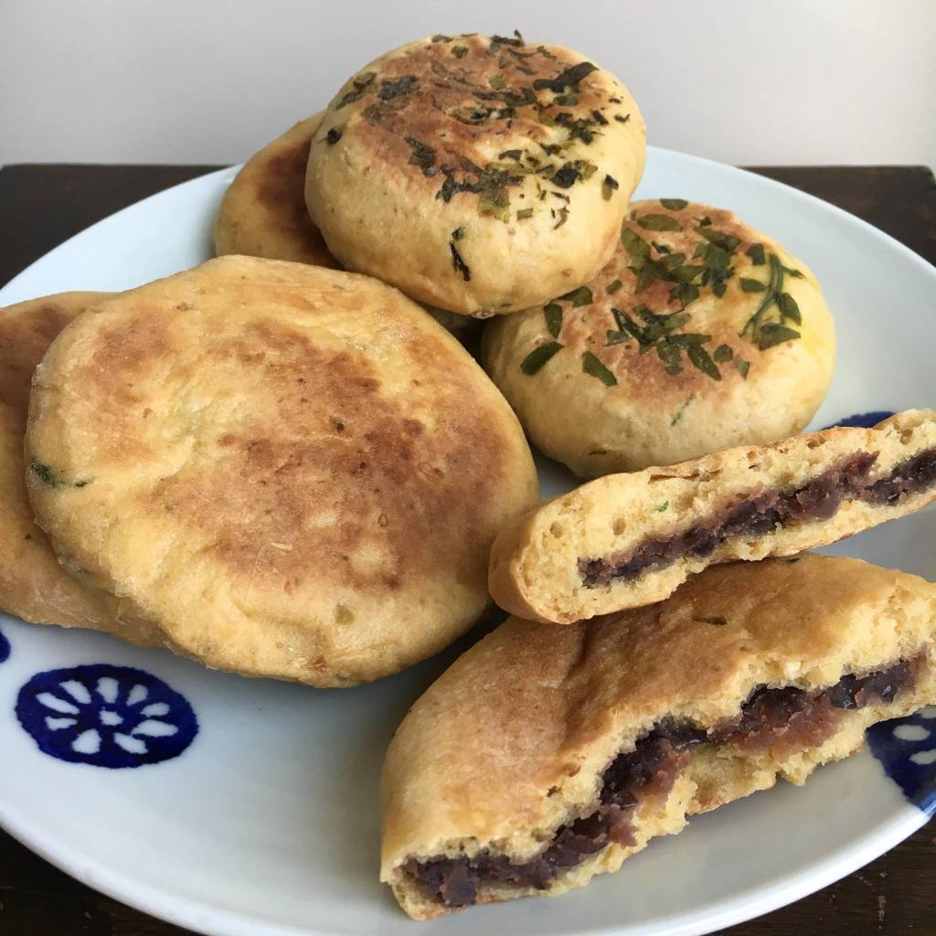 群馬の道の駅などの定番商品になっている現代のおやきは、小麦粉の生地に野菜やみそを混ぜ、丸くして焼いたもの。あんこ入りもあります。こちらもこじゅはんにぴったりの素朴なおやつです。
