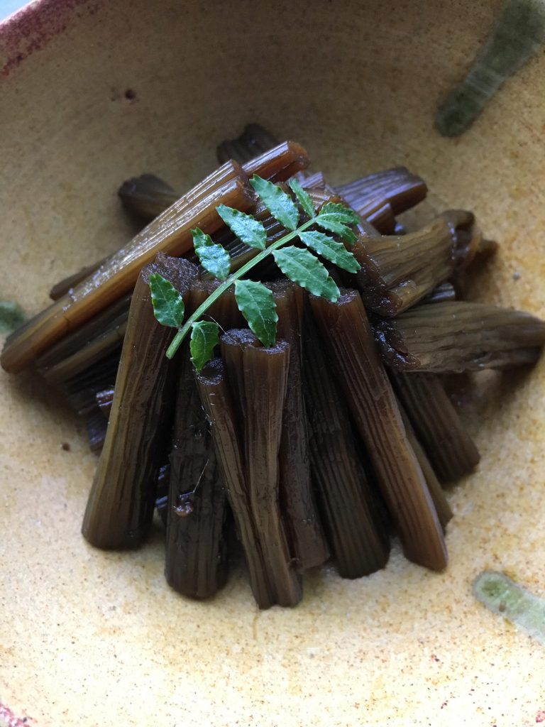 また、フキはいろいろな食べ方があり、クックパッドでもたくさんのレシピが出てきます。つばくろでおなじみの和ノ屋さんは、赤ワインとてんさい糖で煮たものをふるまってくれましたが、まるで果物を食べているようなさわやかさでした。