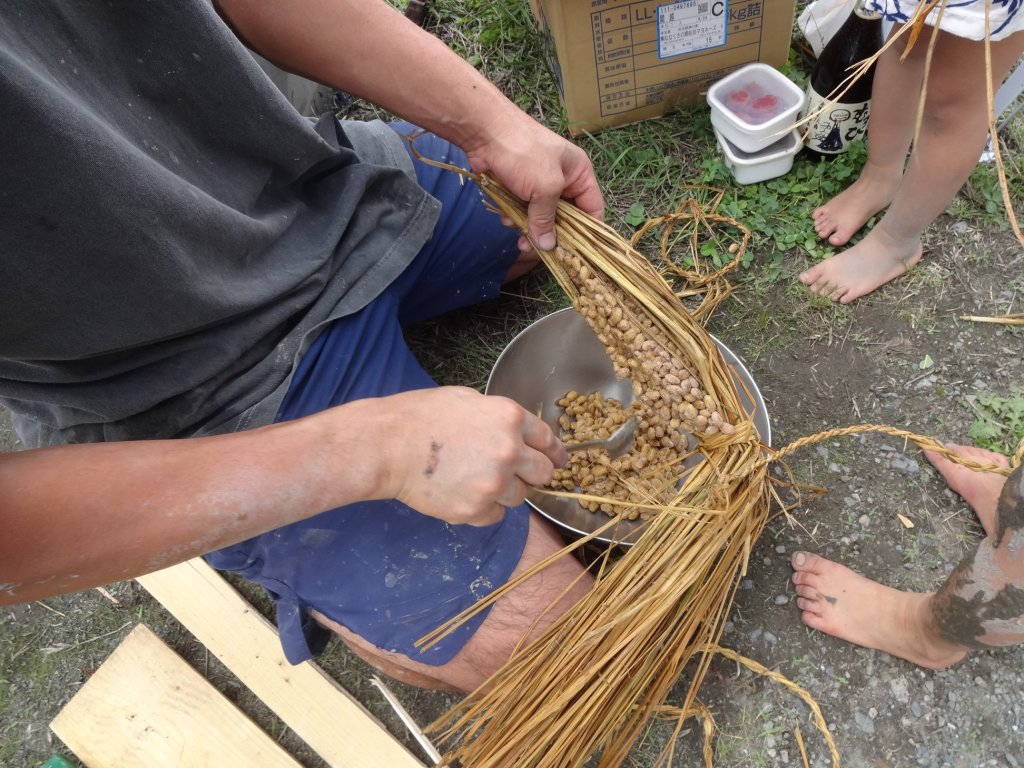 ※写真は弟の田んぼを手伝いにいったときの昼食。田んぼの脇でへっついで炊いたごはんと自家製の納豆。もちろんお米も稲わらも同じ田んぼで去年採れたもの。