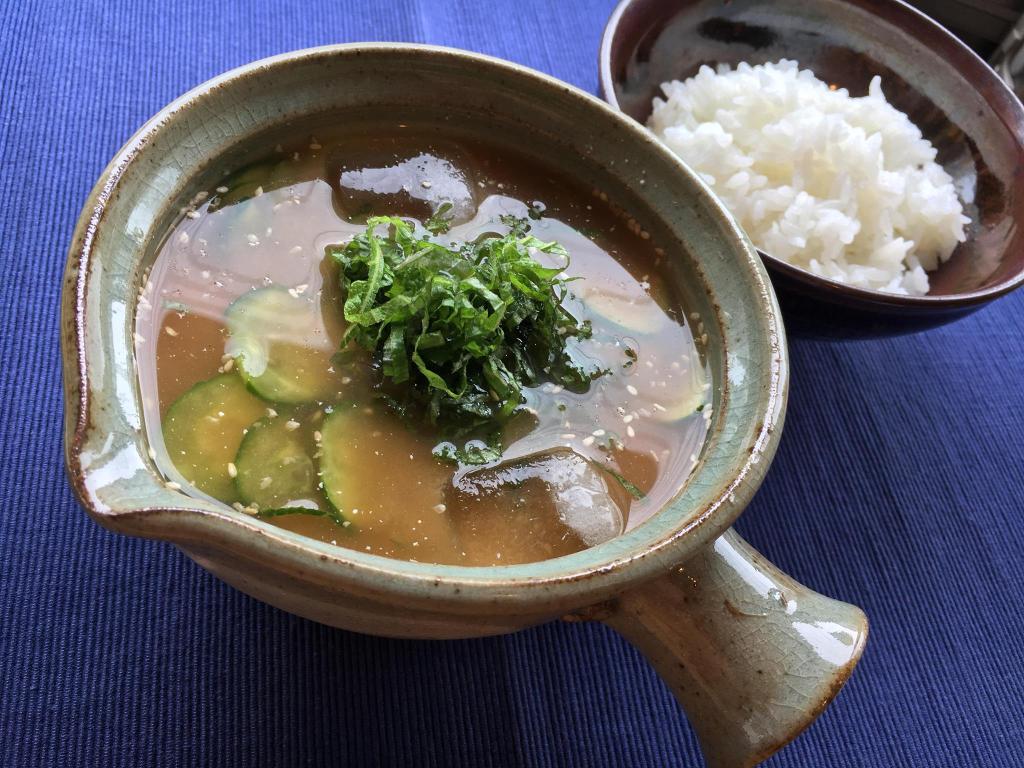 生姜やねぎを加えたり、なすと赤じそをつかったり、砂糖や酢を加えるなど、「流は万流、仕上げはひとつ」と言われ、いろいろあってもどれも「冷や汁」。伝統食の懐の広さ、昔の食文化の豊かさを象徴する一品です。
