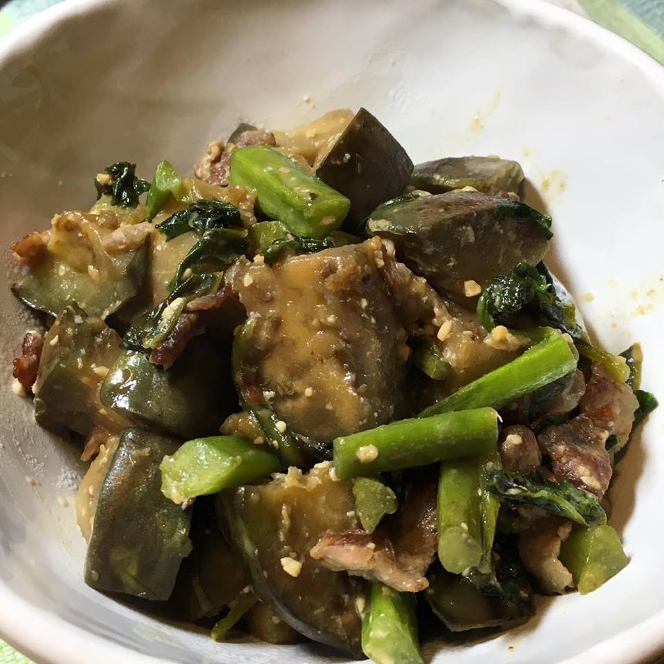 ※写真はなすとつるむらさきに豚肉を少々加えたバージョン。