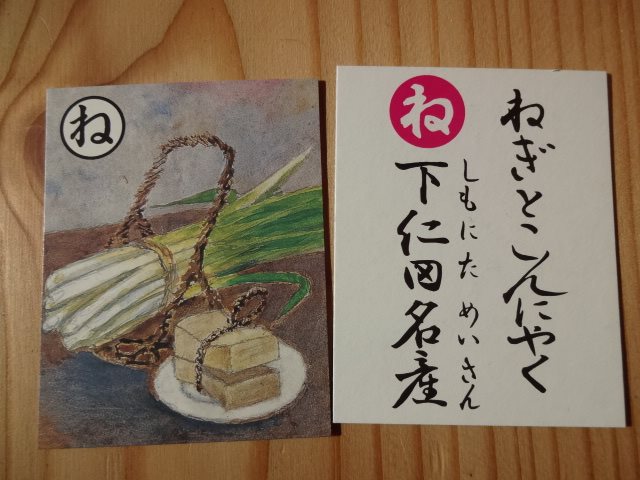 ところが絵札を見ると描かれているのは普通のねぎ。おそらく当時は生産量も少なく、一般の店先では見かけない珍しい食材だったのだろうと思います。