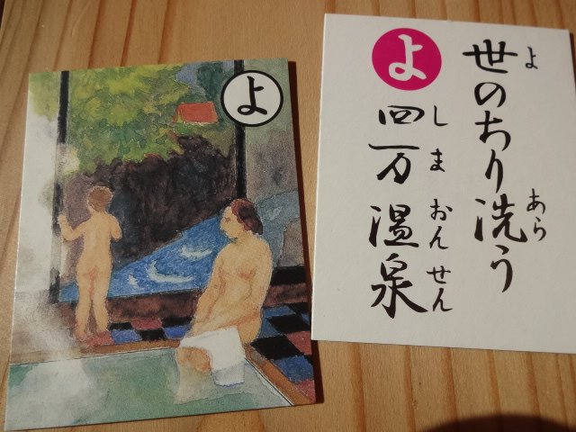 上毛かるた大会をめざす上州群馬の少年たちをどぎまぎさせたこの一枚。裸の母子が描かれた絵札をあまりにもすばやく取るのもなんだか気恥ずかしく、しかし、意識すればするほど、この絵札の位置が目に入ってきてしまうのでありました。