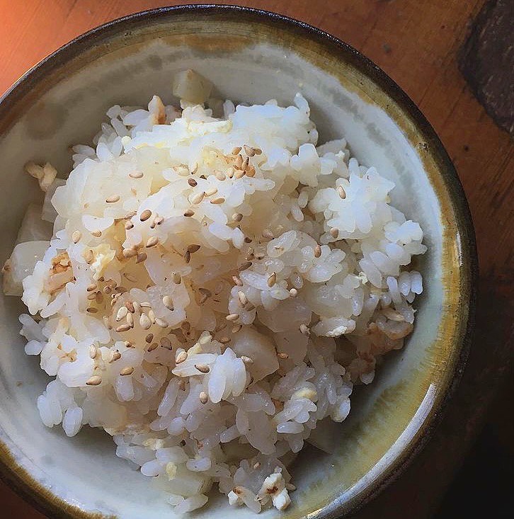 皮ごと角切りにした大根を軽く干し、甘味を凝縮させてご飯に炊き込みます。お