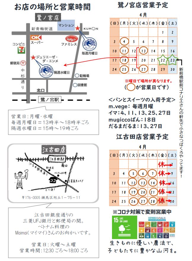 4月の営業予定 投稿者:yaoyatsubakuro2022年4月1日2022年4月9日カテゴリー:営業予定 共有: クリックして X で共有 (新しいウィンドウで開きます) X Facebook で共有するにはクリックしてください (新しいウィンドウで開きます) Facebook いいね 読み込み中…