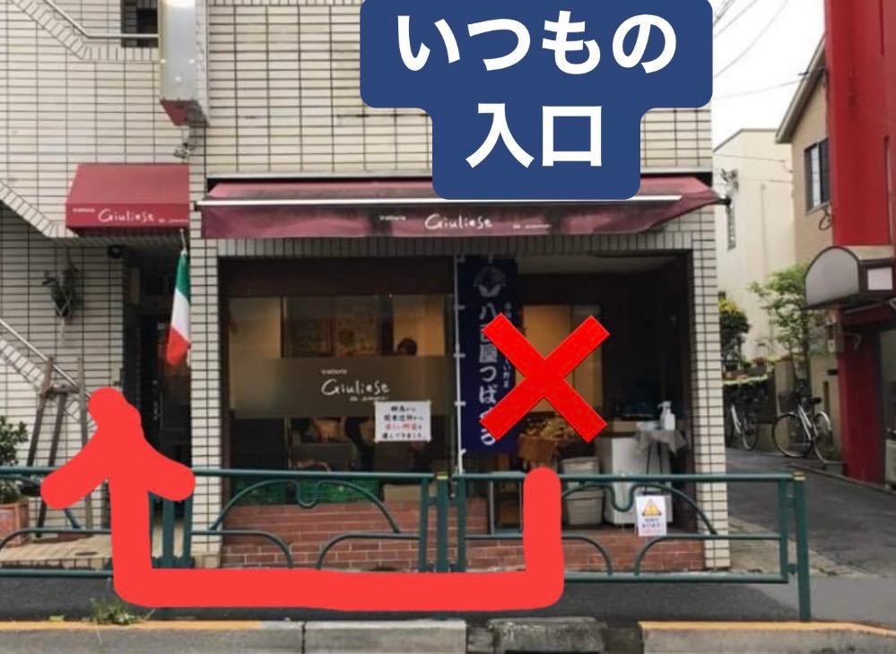 ★26日(水)のジュリエーゼさんでの営業は出入口が正面のガラス戸ではなく、左手の小さな入口になります。