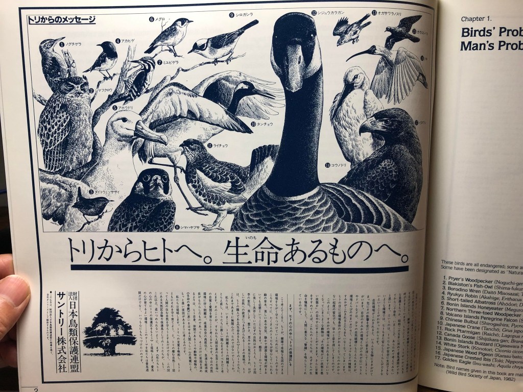 今日の鳥たちに起こることは、明日の人類に起こること。1973年に、薮内正幸さんの美しいイラストとともに大きな意見広告を新聞に投げかけたサントリー。ぼくが好きなのはその後日談。サントリーで「天然水の森」の活動を始めた人の本で読んだエピソードです。