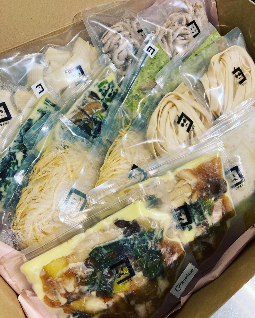 長くお母さんの介護をされている経験から、コナリエさんのお料理コンセプトは「おうちご飯応援」。 毎日おうちで食べるご飯が手軽 に、でもお店で食べるのと変わらない楽しさになるように。そんな願いを込めて、安心安全な第一 級の食材を使って、美しくて見た目でも楽しめるパスタとソースのラインナップをそろえています。