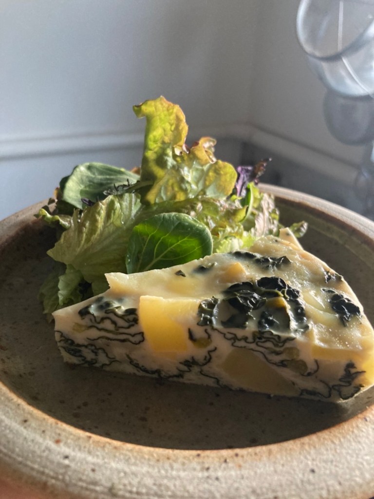 土台のパートブリゼを使わずに中身の卵液とお野菜のみを低温で焼いてつくる簡単なキッシュ風。できたての温かいものも冷めて落ち着いたものもそれぞれのおいしさ。たまごと牛乳とチーズとお野菜は絶対においしい幸せな組み合わせです。